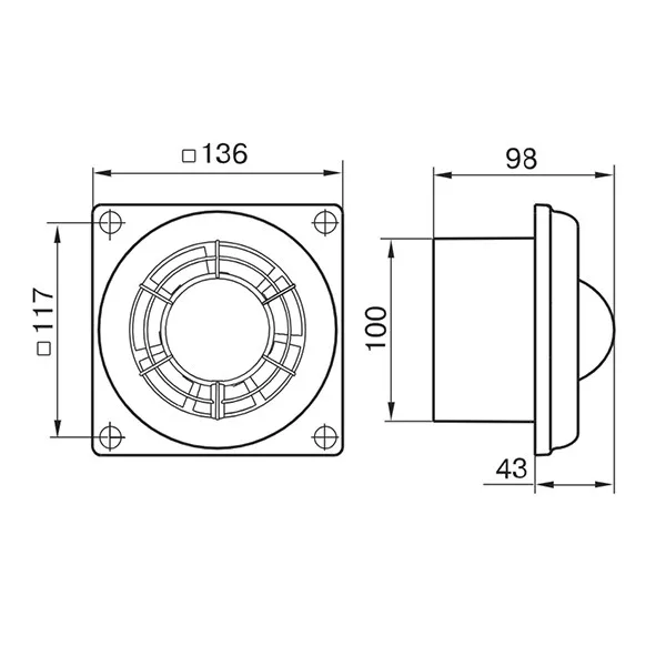 UV-álló ABS műanyagból készült, fürdőszoba, zuhanyzó, konyha és egyéb használati helyiség folyamatos vagy időszakos elszívására. Klasszikus megjelenésű háztartási ventilátor, 100 mm légcsatornához. Időkapcsolóval.