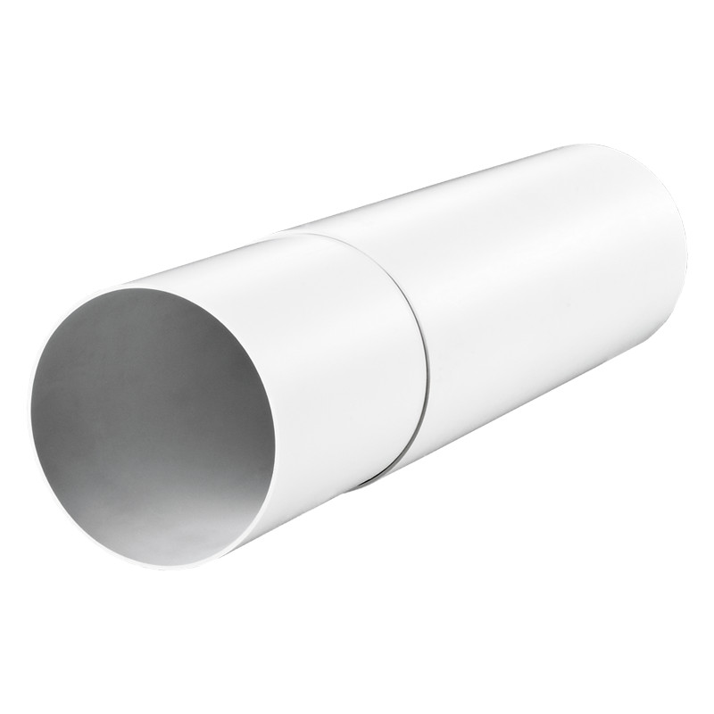 Fehér PVC-ből készült, befúváshoz és elszíváshoz használt légtechnikai elem. Műanyag teleszkópos kör légcsatorna, 100 mm átmérővel, 300-500 mm hosszban.