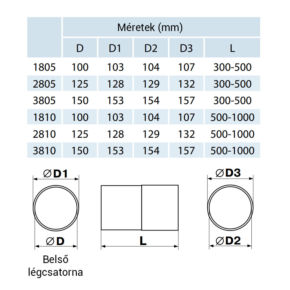 Vents 1810 teleszkópos műanyag légcsatorna 150/300-500 mm