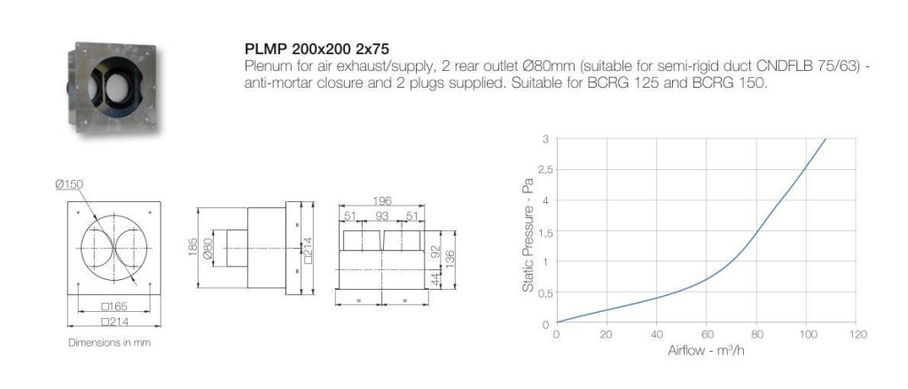Horganyzott acéllemzből készült, központi hővisszanyerős szellőztetésnél a befúvási vagy elszívási pontok kialakítására alkalmas légtechnikai elem. 2 db 75 mm átmérőjű hátsó oldali csőcsatlakozással és 1 db légszelep (NA 150 mm) vagy Aerauliqa BCRG 150 típusú design végelem csatlakoztatására alkalmas felülettel rendelkezik. Gipszkarton mögött elhelyezve mindössze 89 mm (csőcsonkkal együtt 136 mm) a mélységi mérete.