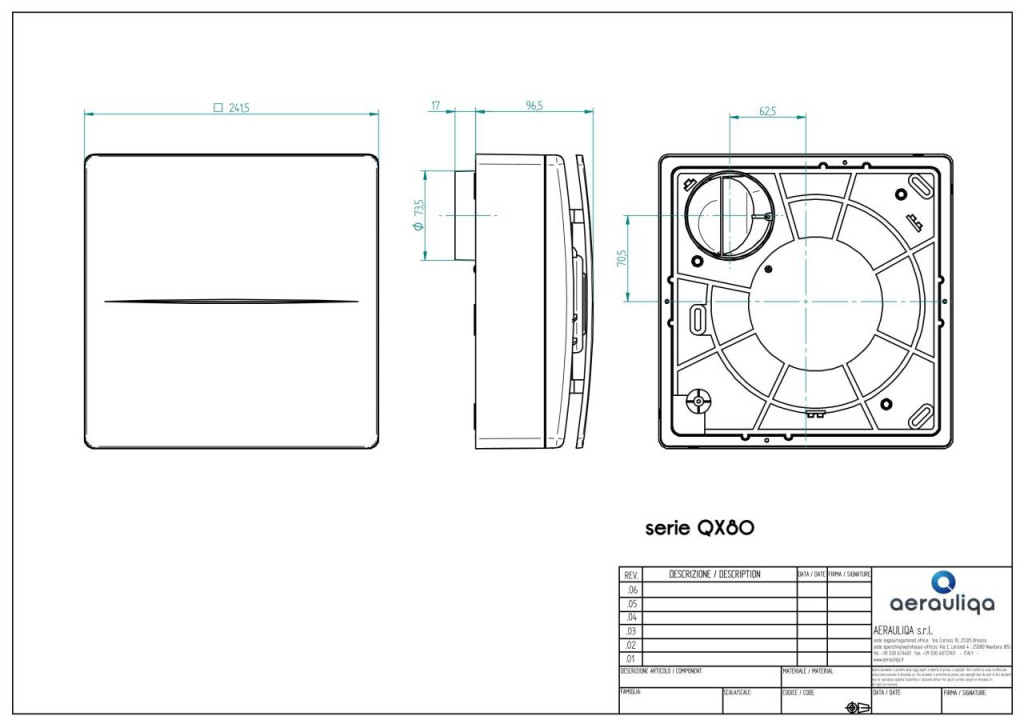 Az Aerauliqa QX szellőztető ventilátorok formatervezett, könnyen levehető és tisztítható előlappal, valamint a ventilátort védő, szintén tisztítható szűrővel rendelkeznek. A süllyesztett kialakításnak köszönhetően, csekély mértékű a falsíktól való kiállásuk. Gipszkartonfalazatba való süllyesztés az Aerauliqa KT-PLASTER QX, opcionálisan rendelhető tartozék felhasználásával lehetséges.
