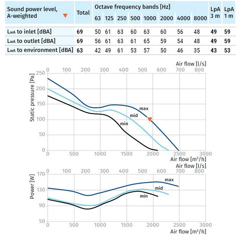 A ventilátor energiatakarékos EC motorral van felszerelve, amely 220–240 V-os egyfázisú áramellátással működik, 50 (60) Hz frekvencián. A golyóscsapágyas motor akár 40 000 órás élettartamot biztosít, emellett hővédelemmel is ellátták, amely megakadályozza a túlmelegedést.