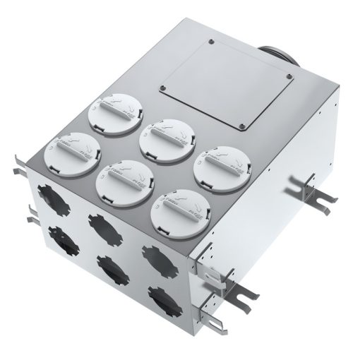 Blaufast légelosztó doboz, 75 mm átmérőhöz, 6 csőcsonkkal.