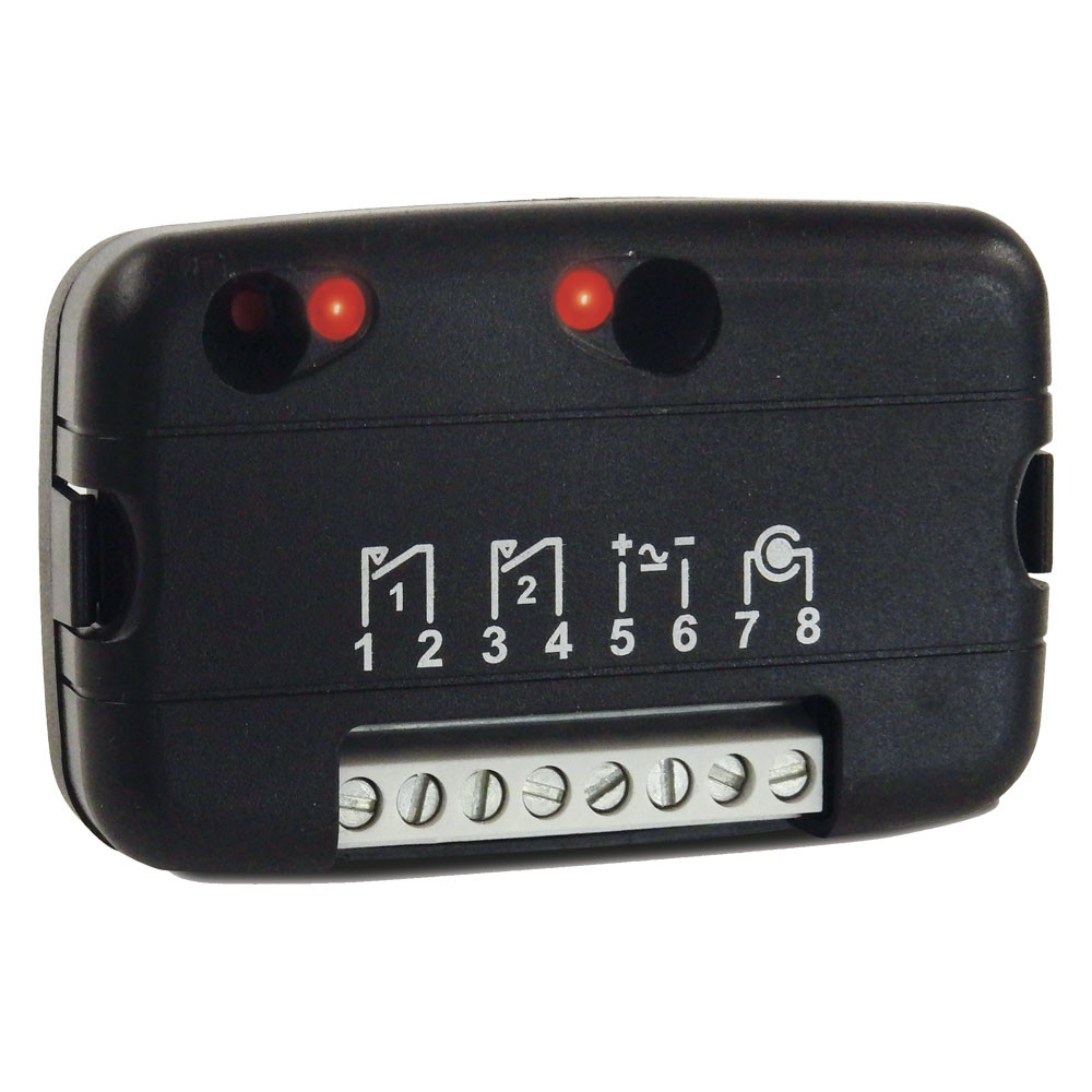 Cardin Telcoma kompakt 2 csatornás, ugrókódos, 433 MHz-es vevőegység dobozban, noire távirányítókhoz.