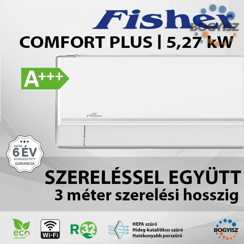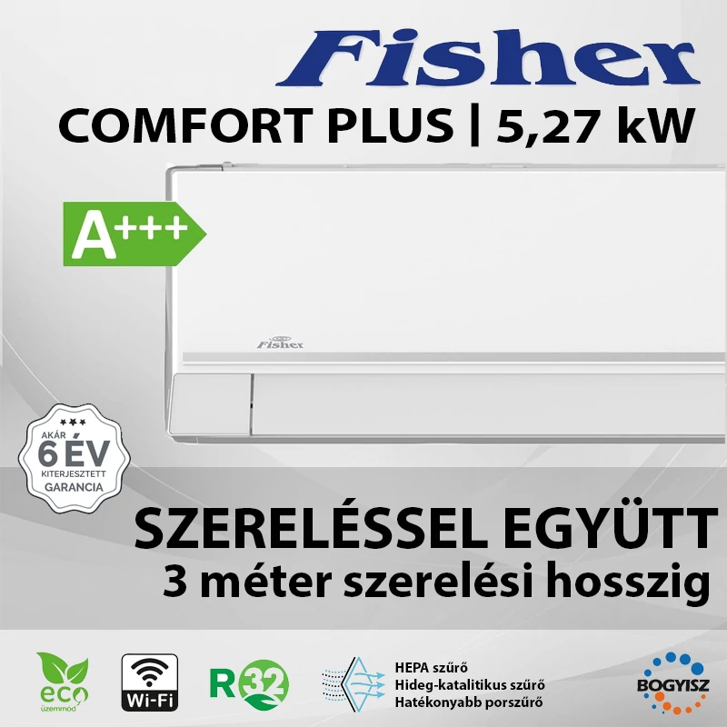 FISHER COMFORT PLUS FSAIF-CP-181AE3/FSOAIF-CP-181AE3 INVERTERES KLÍMA / 5,27 KW / A+++ / R32 - SZERELÉSSEL EGYÜTT