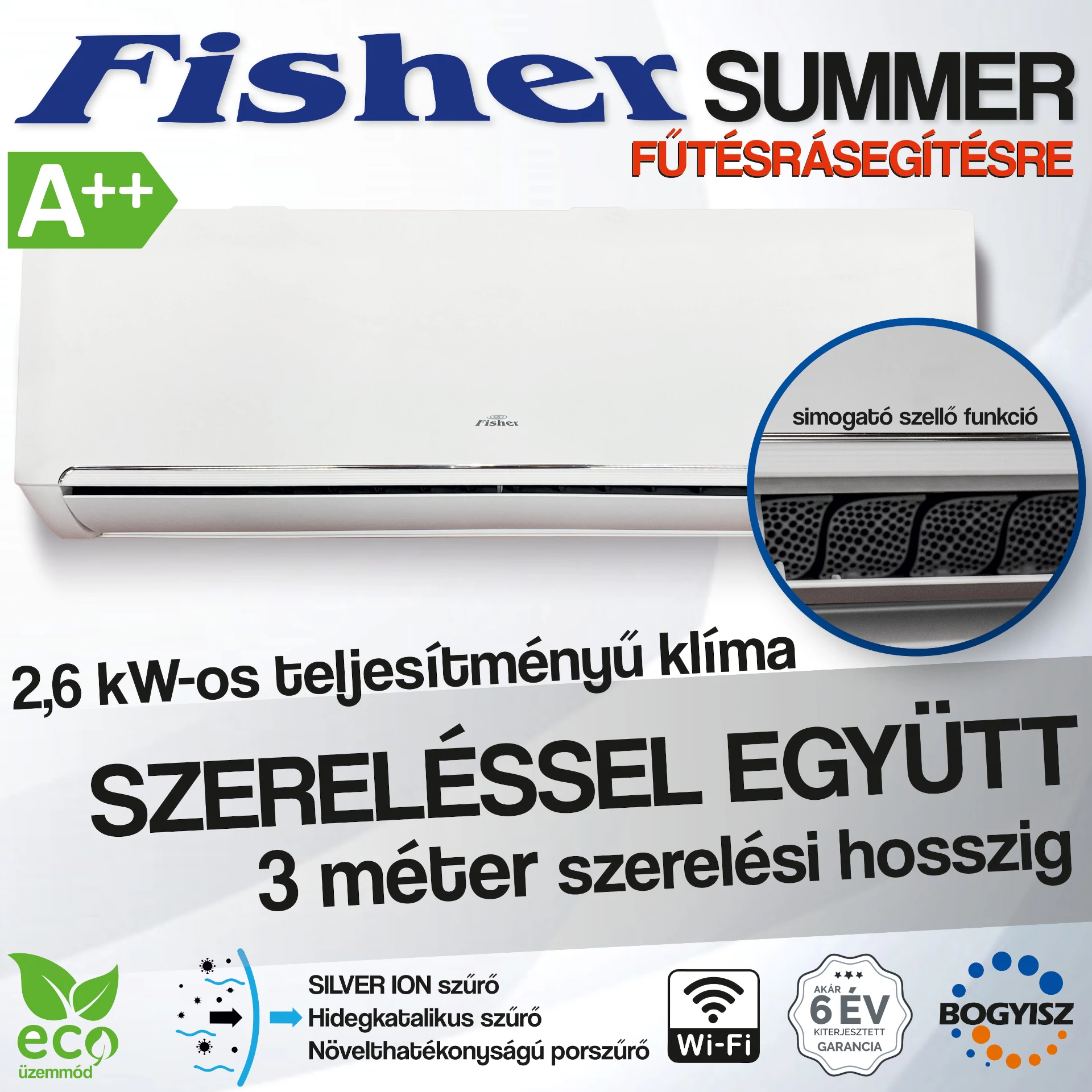 FISHER SUMMER FSAI-SU-95FE3/FSOAI-SU-95FE3 INVERTERES KLÍMA / 2,6 kW / A++ / R32 - SZERELÉSSEL EGYÜTT