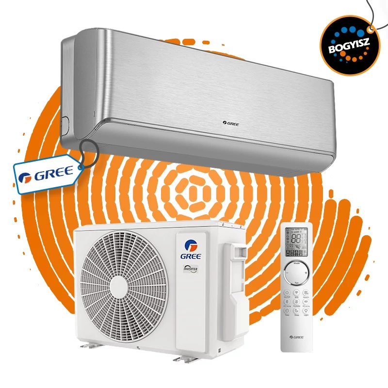 A Gree Airy attraktív megjelenésével, valamint egyedülálló felszereltségével emelkedik ki a Prestige Limitált Széria klímái közül. A csúcstechnológiás modell figyelemfelkeltő szálcsiszolt hatású ezüst kivitelben kerül piacra, melyhez hővisszanyerős friss levegő modul is választható. Az extra felszereltséget beépített mesterséges intelligencia, kompresszor karter- és csepptálcafűtés, illetve páratartalom és kültéri hangszint szabályozás garantálja.