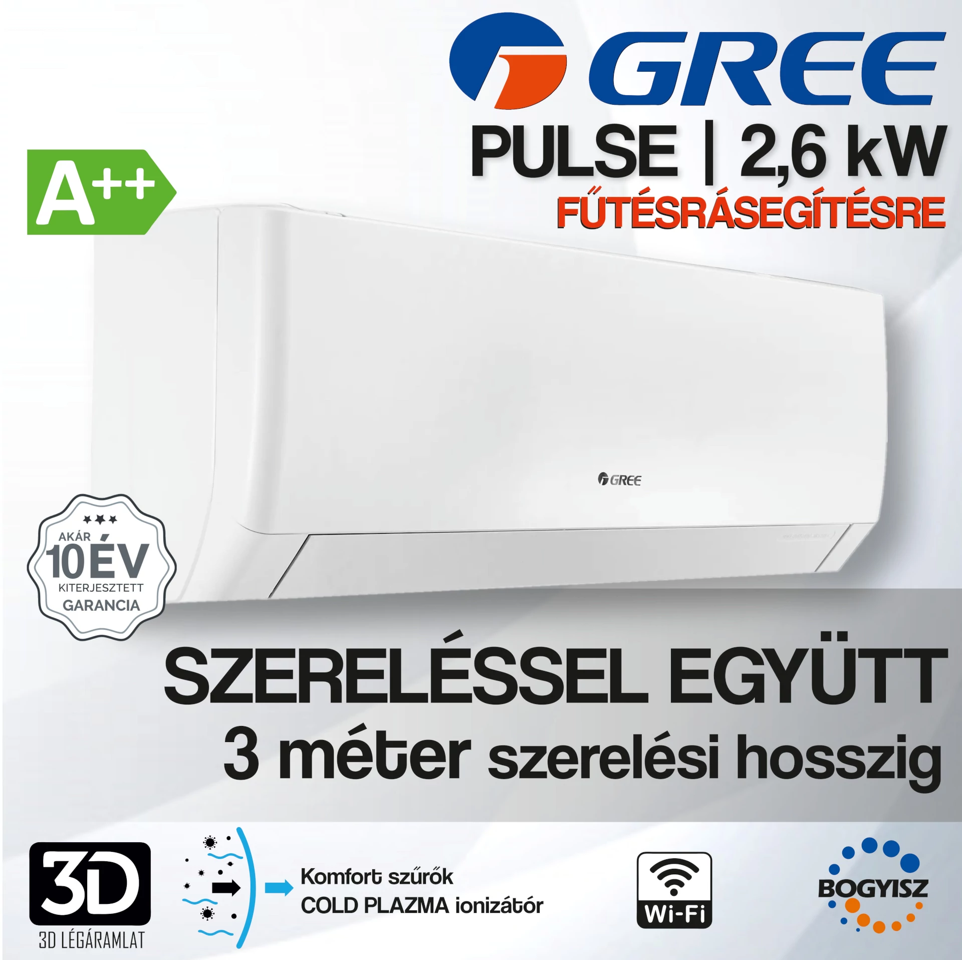 GREE PULSE GWH09AGA-K6DNA1A INVERTERES KLÍMA / 2,5 KW / A++ / R32 - SZERELÉSSEL EGYÜTT
