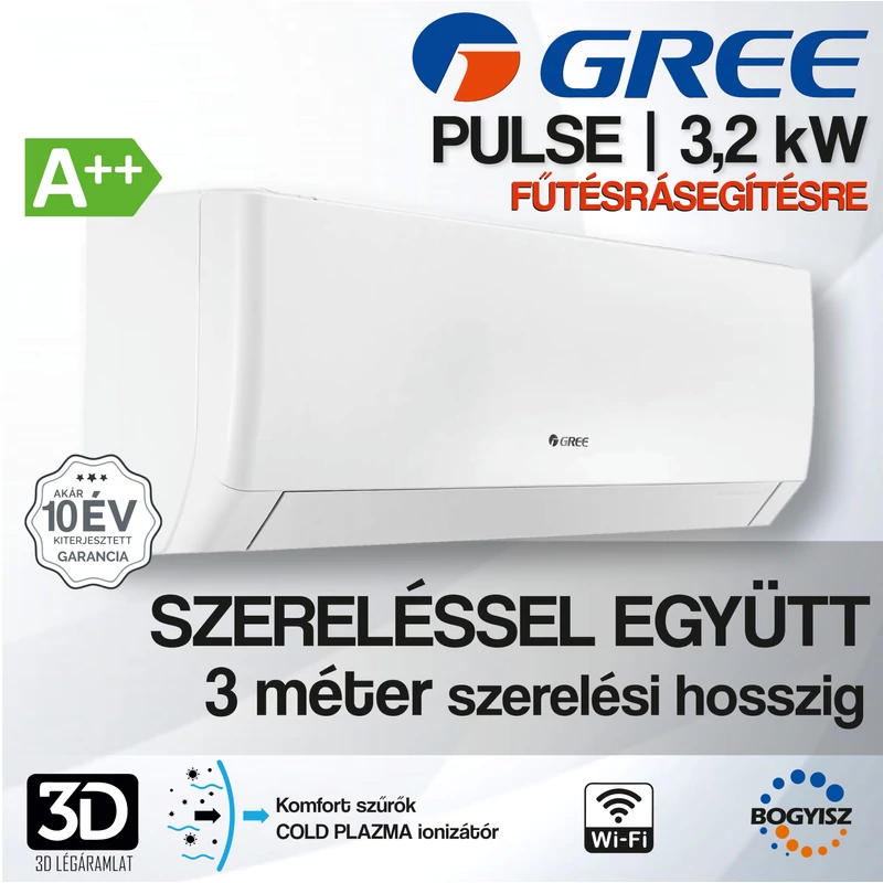 GREE PULSE GWH12AGB-K6DNA1A INVERTERES KLÍMA / 3,2 KW / A++ / R32 - SZERELÉSSEL EGYÜTT