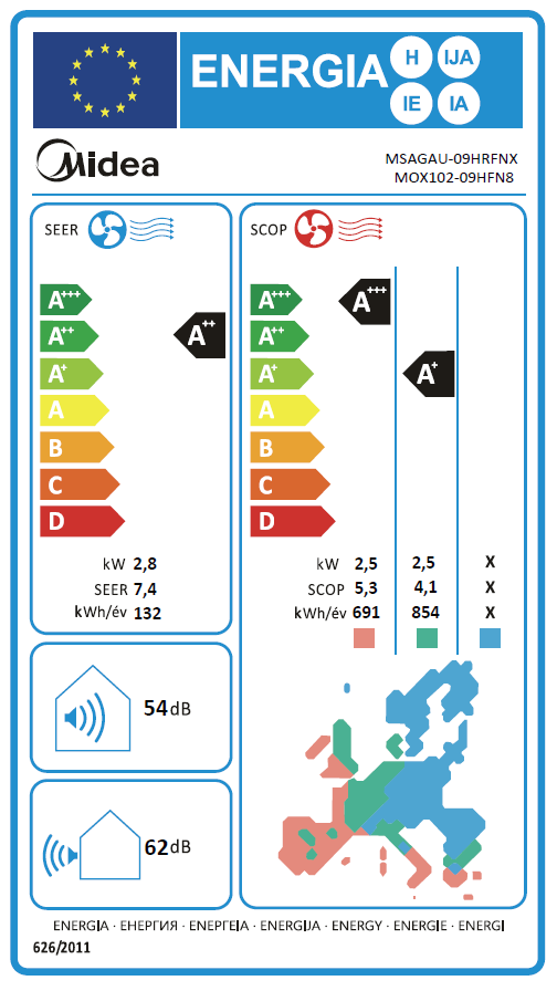 Fűtési energia osztály: