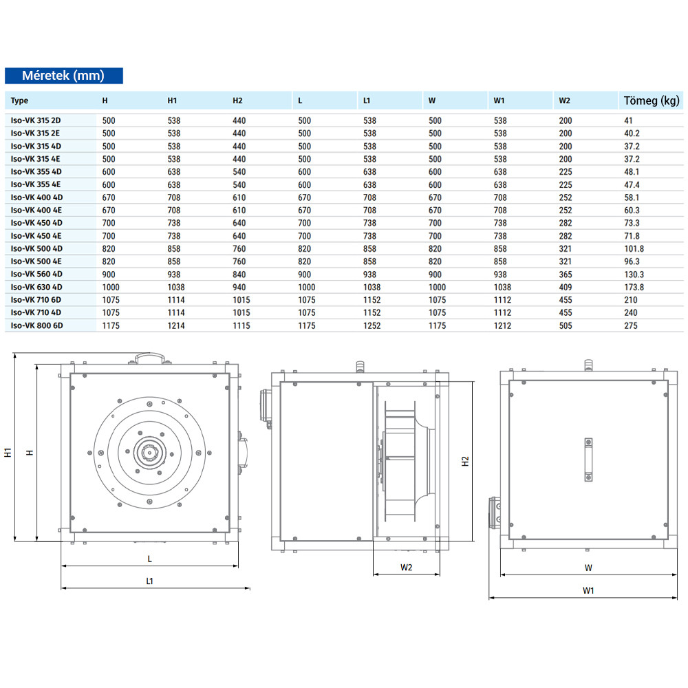Konyhai külső motoros, hő- és hangszigetelt elszívó ventilátor. Legfeljebb 120 °C hőmérsékletű, szennyezett, zsíros, párás levegő elszívására tervezett. Kültéri falra szerelhető ("RSD ISO-VK" tetőelem kiegészítő ajánlott) és kör keresztmetszetű légcsatornához csatlakoztatható.