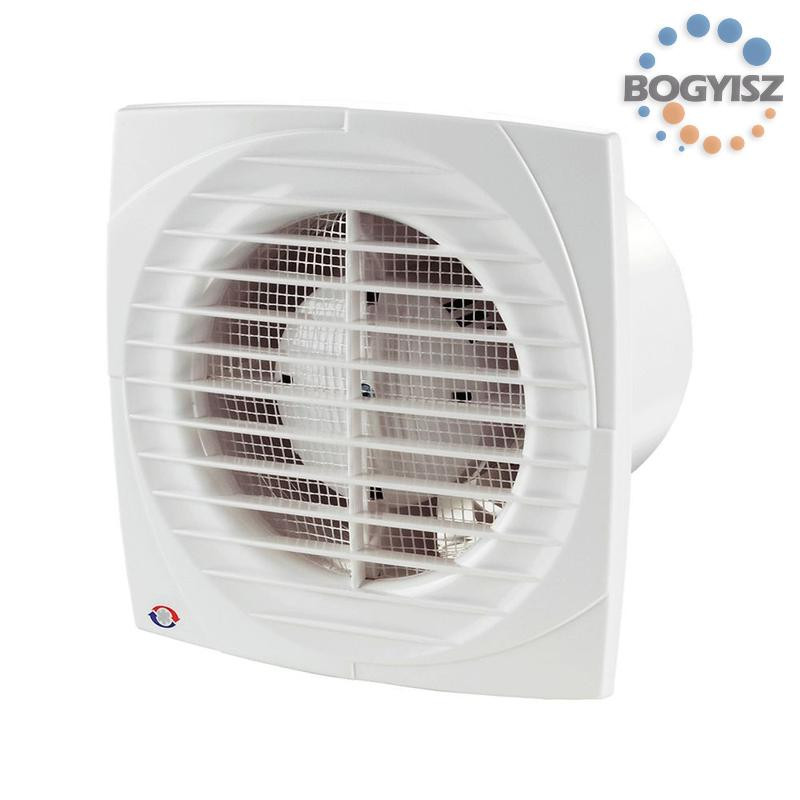 Vents fali axiális háztartási ventilátor, 100 mm átmérő. Csendes kivitel, időzíthető kikapcsolás funkcióval és páraérzékelővel. Rovarhálóval szerelt, vékony és ívelt front panellel.