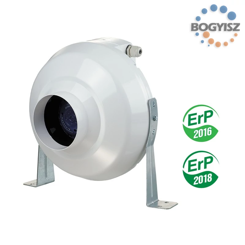 Vents csatornaszakasz közé építhető axiális csőventilátor, 100 mm átmérő, hatékony járókerék kialakítással.