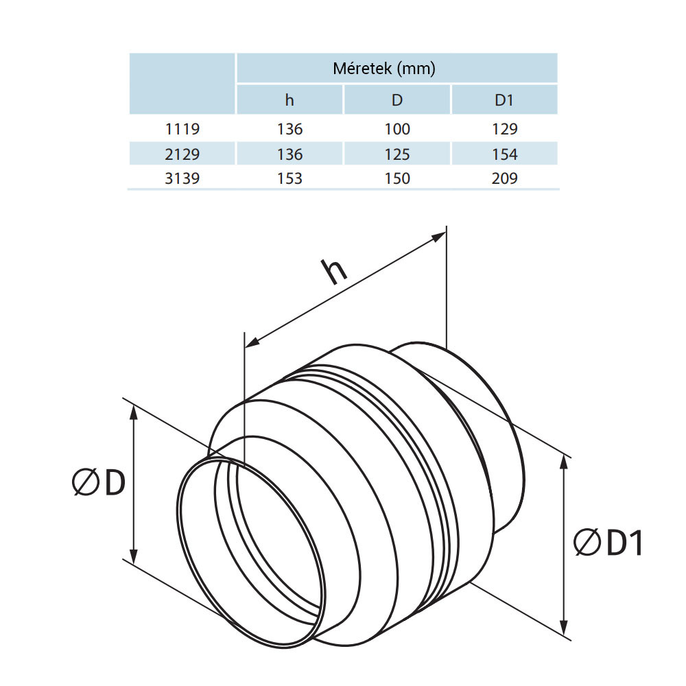 • Csatlakozó átmérők: 100, 125, 150 mm.
