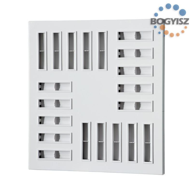Befúvó és elszívó szellőzéshez difúzor ipari, kereskedelmi és lakóépületekhez. Polimer bevonatú acélból készült műanyag terelőbetétekkel. Álmennyezetbe szerelhető, állítható levegőáramlási irány.