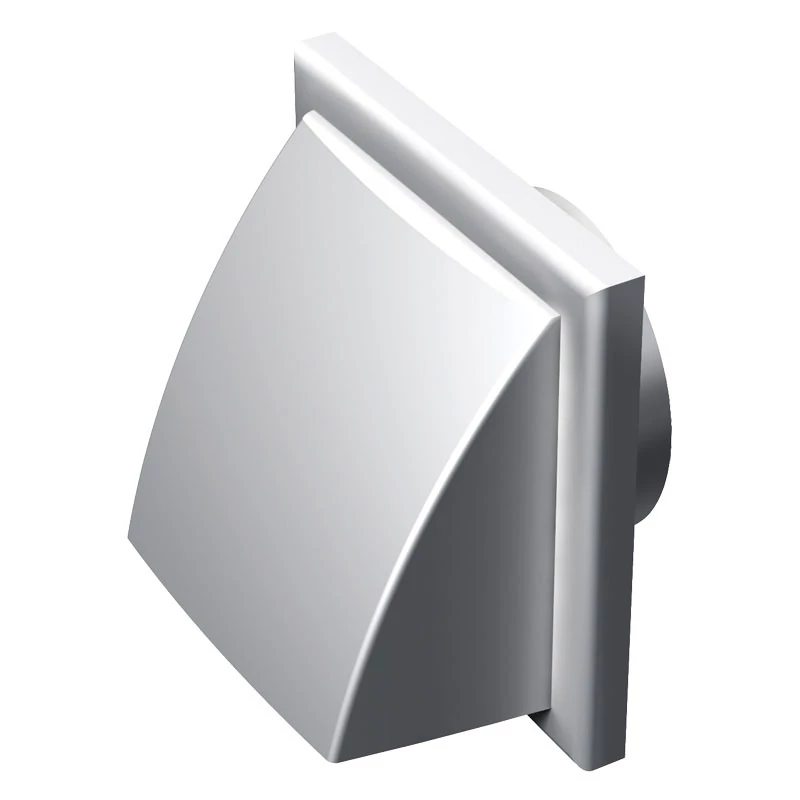 Műanyag takaróelem lakossági, közületi vagy ipari szellőzőrendszerek be- és elszívónyílásainak lezárására. Fehér szín, négyszögletes kialakítás. Ereszelem. 125 mm átmérő csőcsatlakozás. 187x187 mm.
