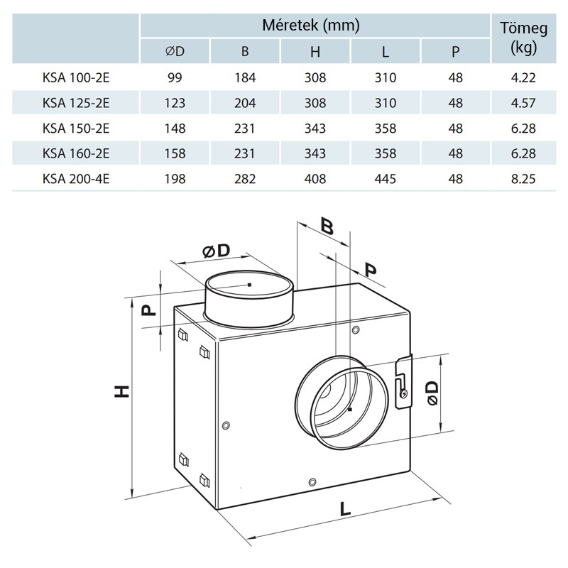A KSA ventilátor kialakítása lehetővé teszi alkalmazását befúvó és elszívó szellőztető rendszerekben kereskedelmi, irodai, valamint egyéb közösségi vagy ipari létesítményekben, ahol alacsony zajszintre van szükség. Alkalmas Ø100, 125, 150, 160 és 200 mm átmérőjű kör keresztmetszetű légcsatornákhoz való csatlakoztatásra.
