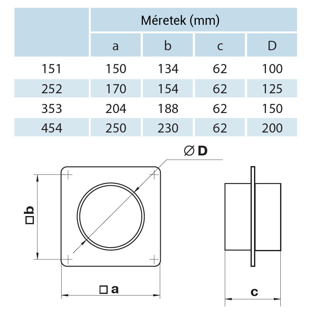 • Csatlakozó átmérők: 100, 125, 150, 200 mm.