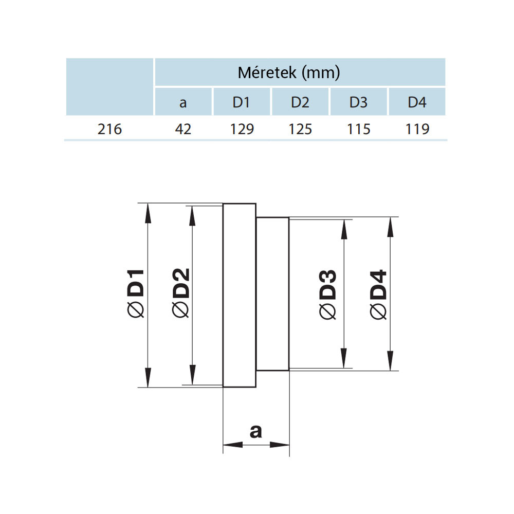 • Csatlakozó átmérők: 125-129 mm.