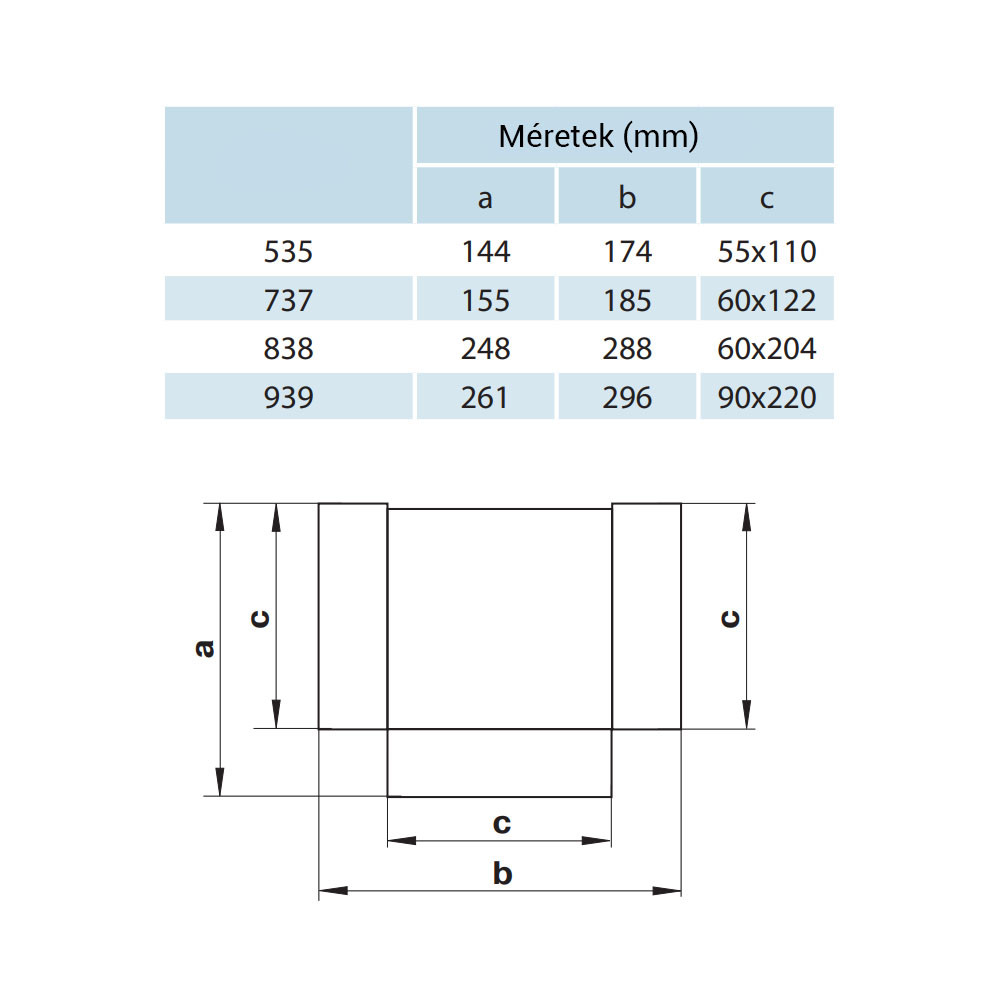 • Csatlakozó méretek: 55×110, 60×122, 60×204, 90×220 mm.