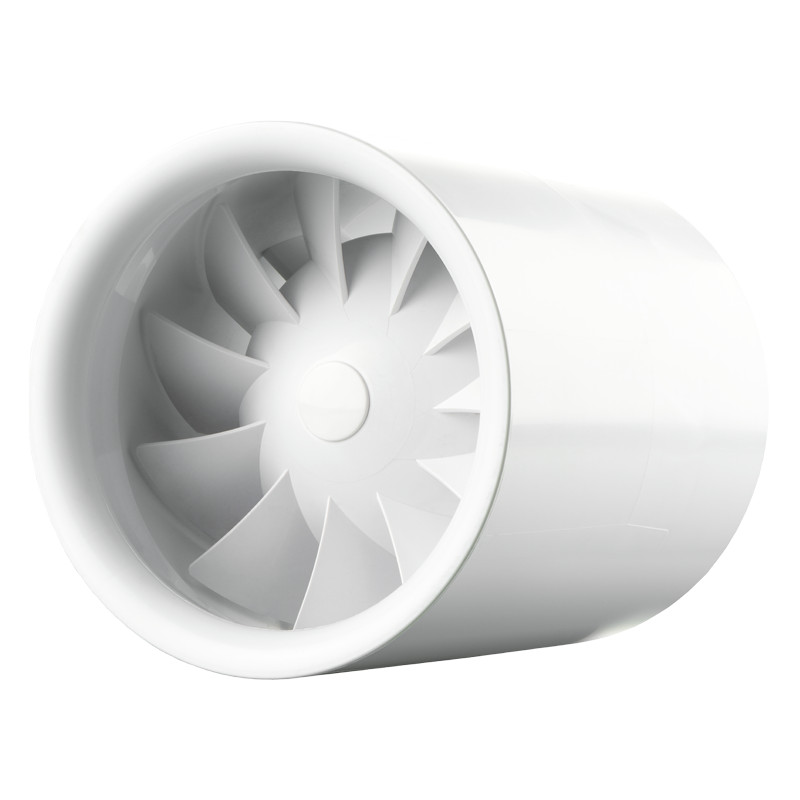 UV-álló ABS műanyagból készült, fürdőszoba, zuhanyzó, konyha és egyéb használati helyiség folyamatos vagy időszakos elszívására. Háztartási csőventilátor, 125 mm légcsatornához. Rögzítőtalppal együtt szállítva.