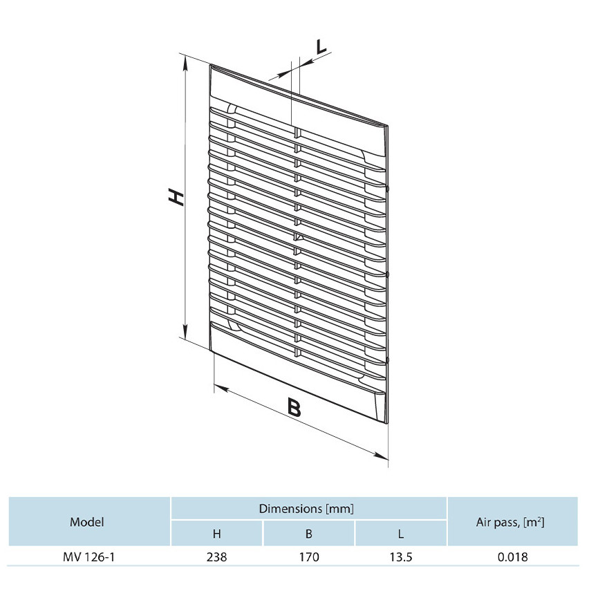 Vents MV 126-1S ABS ragasztható szúnyoghálós 170x238 szellőzőrács