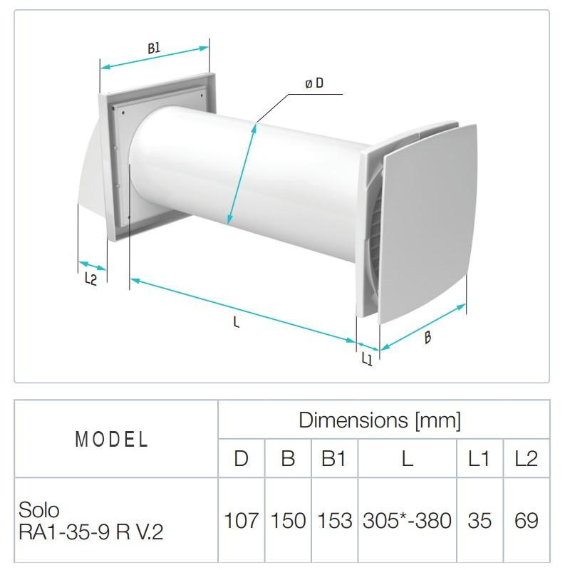 VENTS SOLO RA1-35-9- R EGYHELYISÉGES EGYCSÖVES HŐVISSZANYERŐS LÉGKEZELŐ BERENDEZÉS