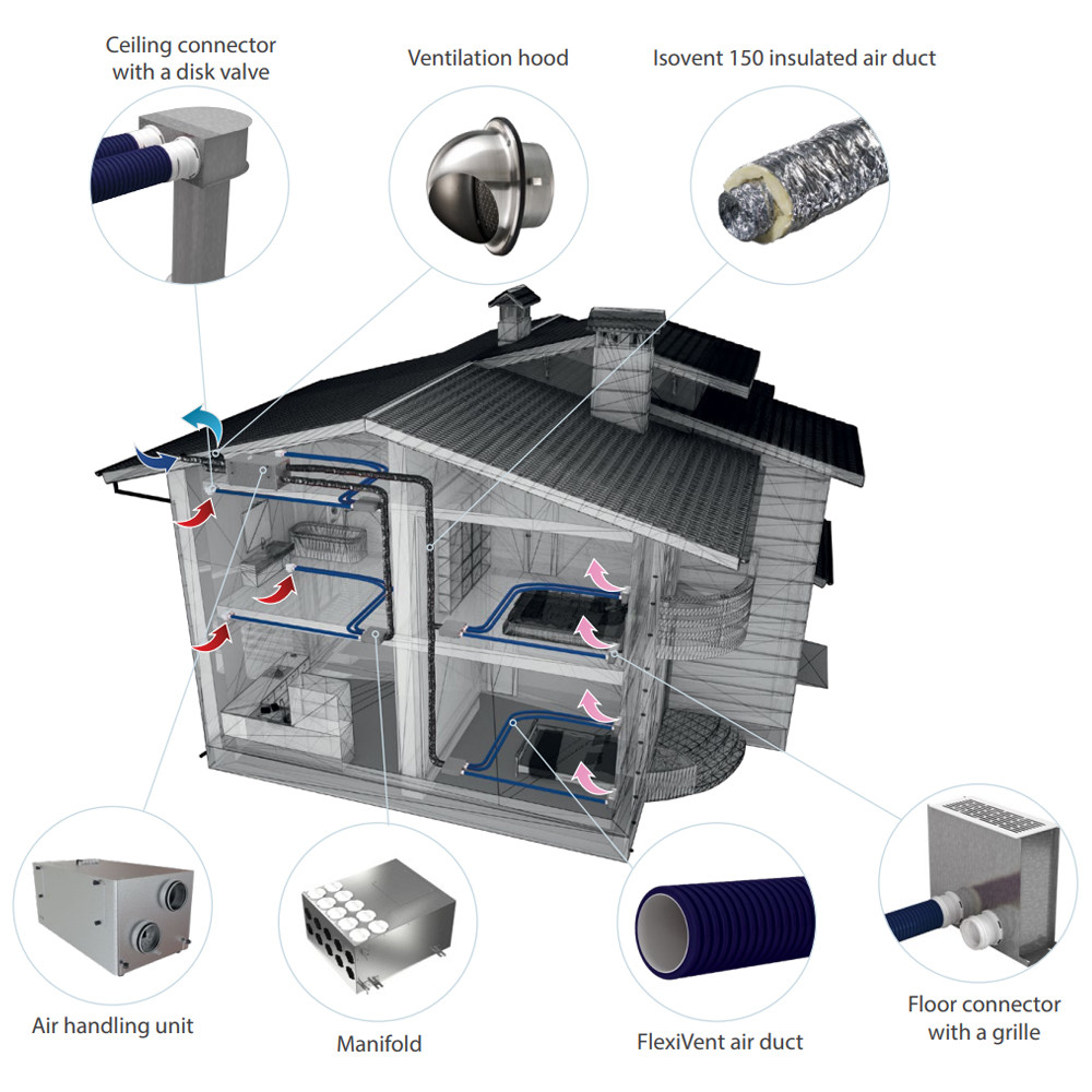 Hővisszanyerős légkezelő berendezés az energiahatékony szellőztetés kialakításához lakásokban, családi házakban, irodákban és egyéb helyiségekben. Hő és akár páravisszanyeréssel csökkenthetjük az energiafelhasználást és növelhetjük a komfortot a belső terekben. Vezérléssel testreszabható és igény szerint szabályozható a szellőzés az épületben.