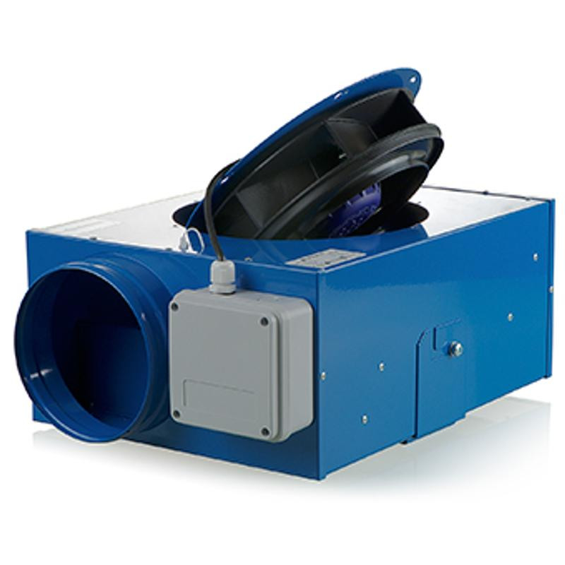 Vents ipari radiális ventilátor, 125 mm átmérővel, csatorna szakaszok közé építhető.