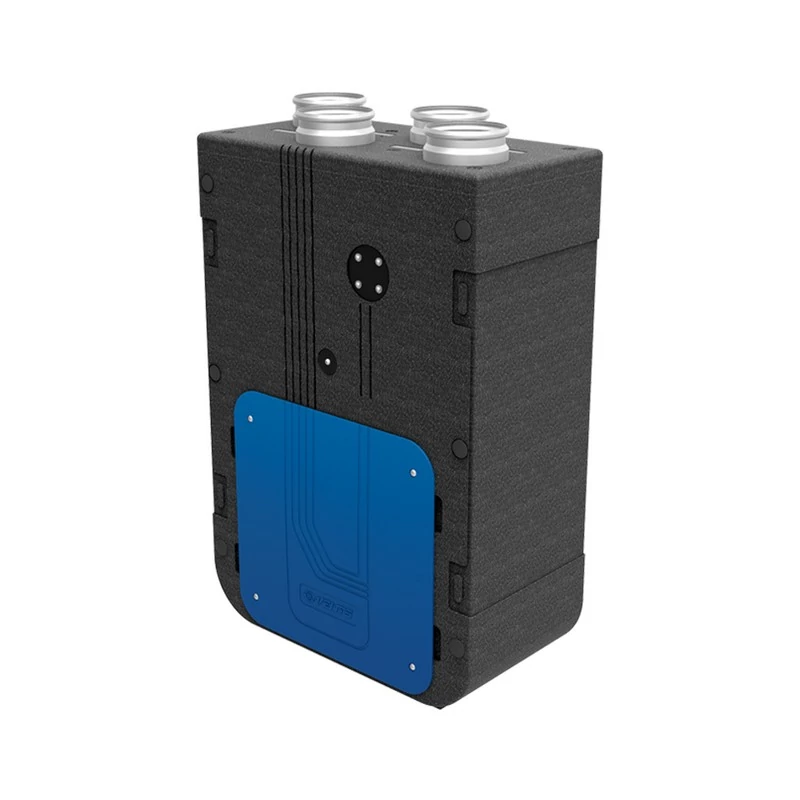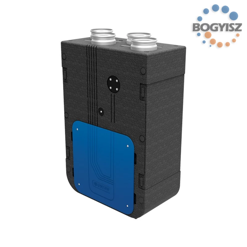 Vezérléssel testreszabható és igény szerint szabályozható a szellőzés az épületben. Légkezelő berendezés álló vagy oldalfali beépítés, EC motor, vertikális 125 mm-es csonkokkal, keresztáramú entalpia hővisszanyerővel, beépített bypassal, 300 m3/h 100 Pa teljesítménnyel, A14 vezérléssel.
