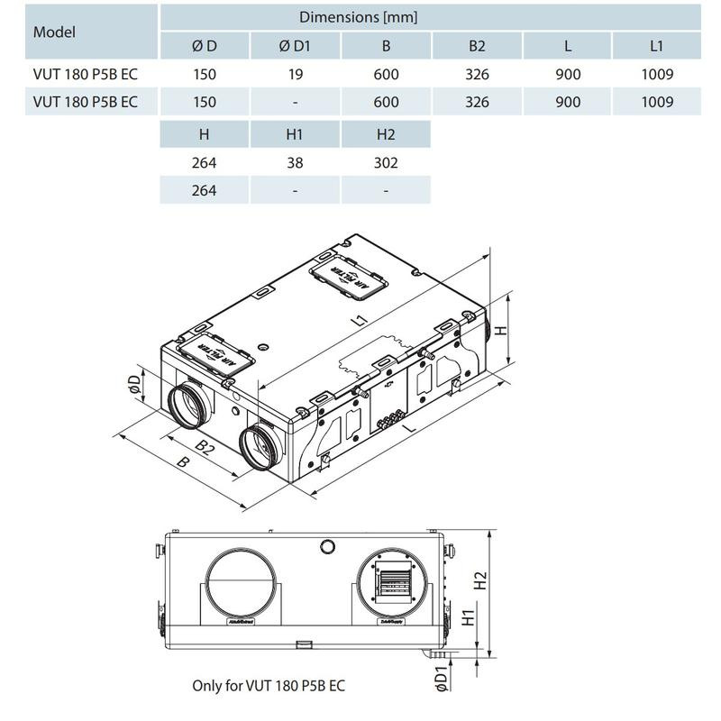 Vents VUT 180 P5B EC A14 központi hővisszanyerős légkezelő