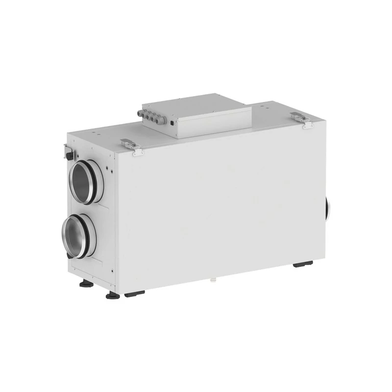 Vezérléssel testreszabható és igény szerint szabályozható a szellőzés az épületben. Légkezelő berendezés álló vagy oldalfali beépítés, EC motor, horizontális 125 mm-es csonkokkal, keresztáramú hővisszanyerővel, 300 m3/h 100 Pa teljesítménnyel, A14 vezérléssel.