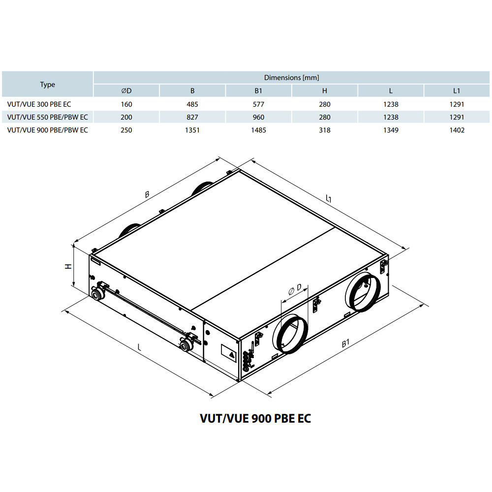 A VUT 300/550/900 PBE EC egységek lemezes ellenáramú polisztirol hőcserélővel rendelkeznek, amely visszanyeri a hőt.